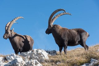 Deux étagnes et jeune bouquetin mâle dans le Vercors