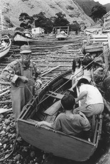 Ile Robinson Crusoé. Jeux des enfants autour d'une barge
